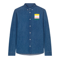 The Stanley denim shirt for men. Medium fit. Button-down collar with single-needle topstitches. Collar stand. Front placket single-needle topstitches on each side. Forwarded shoulder. Back yoke. Inside yoke in self-fabric. Set-in sleeves. Sleeve placket with one button. Cuff with two buttons. Rounded cuff corners. Double pleats at cuff seam. Faded look on all seams due to garment washing – indigo yarn dyed product – so each garment may vary in appearance.